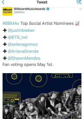 K-POP grupları arasından BTS‘in de katılacağı Billboard 2017 Müzik ödülleri, 21 Mayıs Pazar gece saat 03:00’da canlı olarak SHOWTV ekranlarında yayınalacak. Kanalın yayın akışı sayfasında detaylı bir bilgilendirme olmasada, yayın