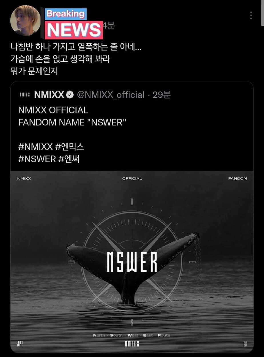 1 Mart’ta, ilk tekli albümleri “AD MARE” ve başlık şarkısı “O.O” ile çıkış yaptıktan bir hafta sonra NMIXX, fan kulüp (fandom) ismini resmen açıkladı. NMIXX OFFICIAL FANDOM NAME “NSWER”#NMIXX #엔믹스#NSWER