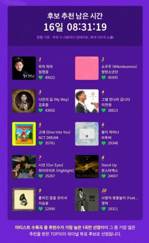 MelOn‘da seçilen favori b-side şarkıları – Top10 1. Im Young Woong – Ttara Ttara 2. BTS – Mikrokosmos 3. Kang Hojoong – My Way 4. Lee Chan Won – I’m