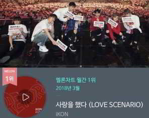 iKON ‘Love Scenario’ ile yeni rekorlar kırmaya devam ediyor. Hit parça, Şubat ayının ardından Mart ayının da aylık listelerinde zirveye yerleşti. Melon ve Genie’de 2 ay üst üste aylık müzik grafiklerinde