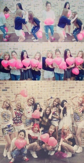 Red Velvet sunbaeleri Girls’ Generation’a sevgilerini gösteriyor. Girls’ Generation ‘Party’ ile dün Music Bank’ta geri dönüş yaptı.Kızlar aynı şirketten Red Velvet ile poz verdi ve kısa buluşmada onlar pembe balonlarla
