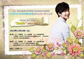 Yakışıklı aktör Song Jae Rim Japon hayranlarıyla buluşmaya hazırlanıyor! Song Jae Rim 15 Kasım 2014 Cumartesi günü Japonya’da resmi fan kulübü ‘VIENTO’ ya özel ‘Smile Vol. 1’ isimli bir fan