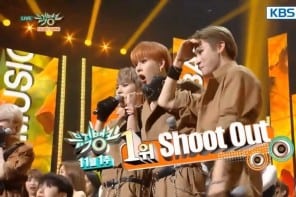 Monsta X bugün tekrardan birinci oldu! 2 Kasımda yayınlanan KBS “Music Bank” bölümünde Monsta X “Shoot Out” ile IU “BBIBBI” ile birincilik için aday oldu. IU 5,218 puan alırken Monsta