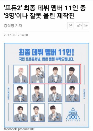 11 üyeden oluşan “Produce 2” final dizilişi. Personel yanlışlıkla 3 üyeyi hatalı paylaşmıştı Maalesef, Yoon Jisung, Ha Sungwoon ve Kim Jaehwan yerine yanlışlıkla elenen Kim Samuel, Kang Dongho ve Kim